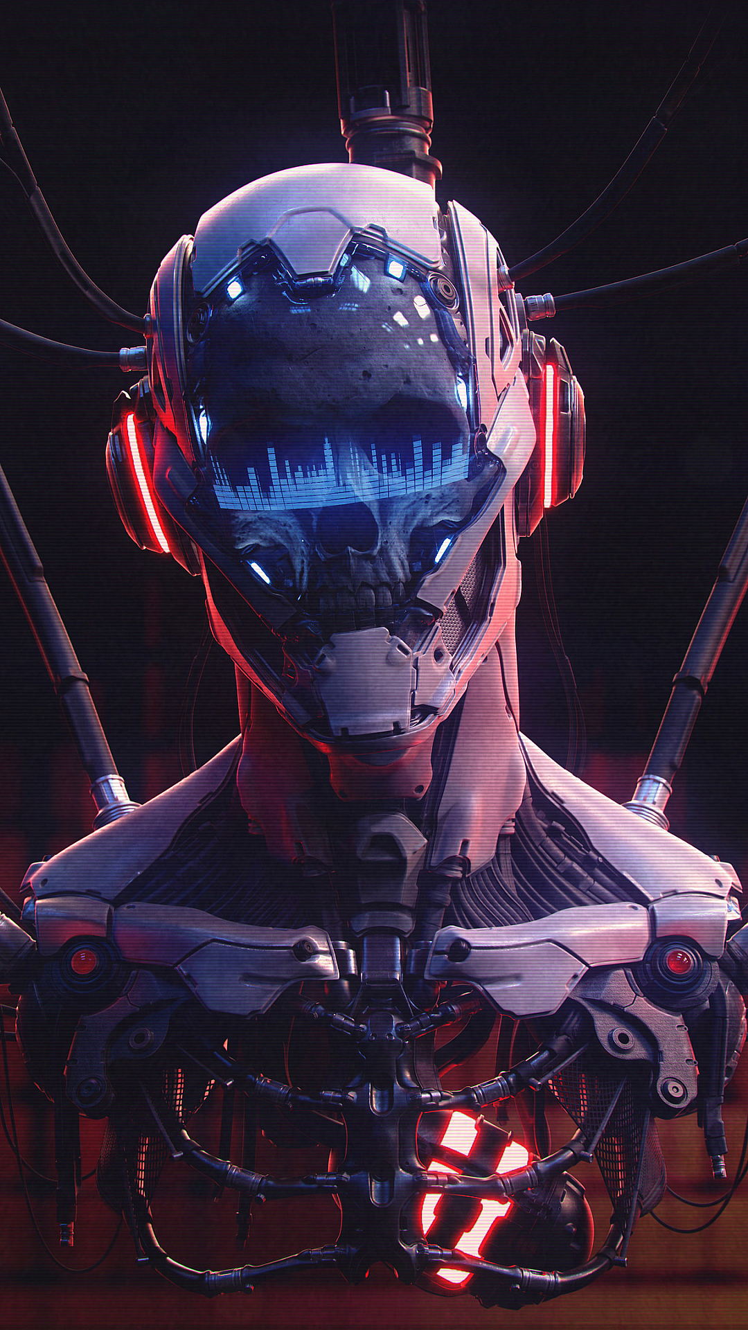 Keywords: skull, audio, cyberpunk, sci-fi, wallpaper, futuristic, technology, neon, digital art, dark, gritty, headphones, headset, cybernetic, skull art, science fiction