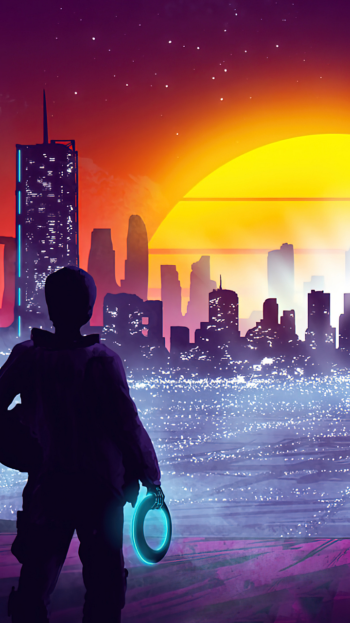 sunset, sci-fi, city, digital art, cityscape, futuristic, neon, cyberpunk, fantasy, illustration, abstract, architecture, metropolis, urban, technology