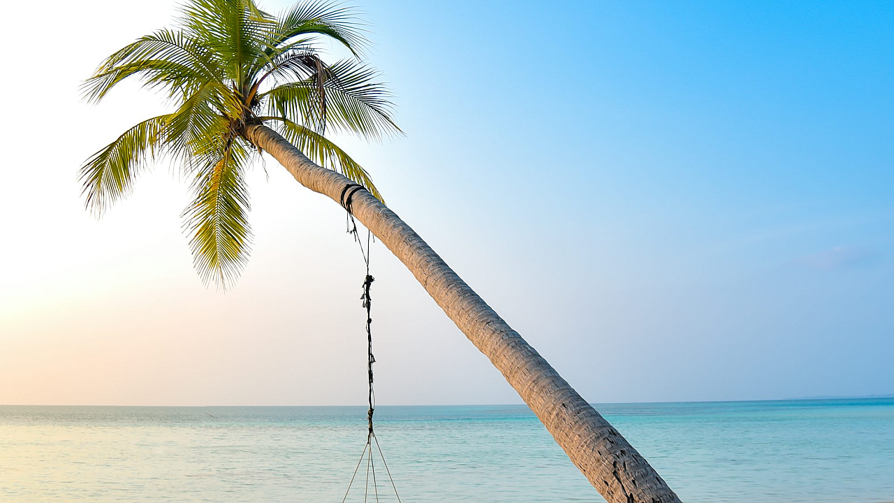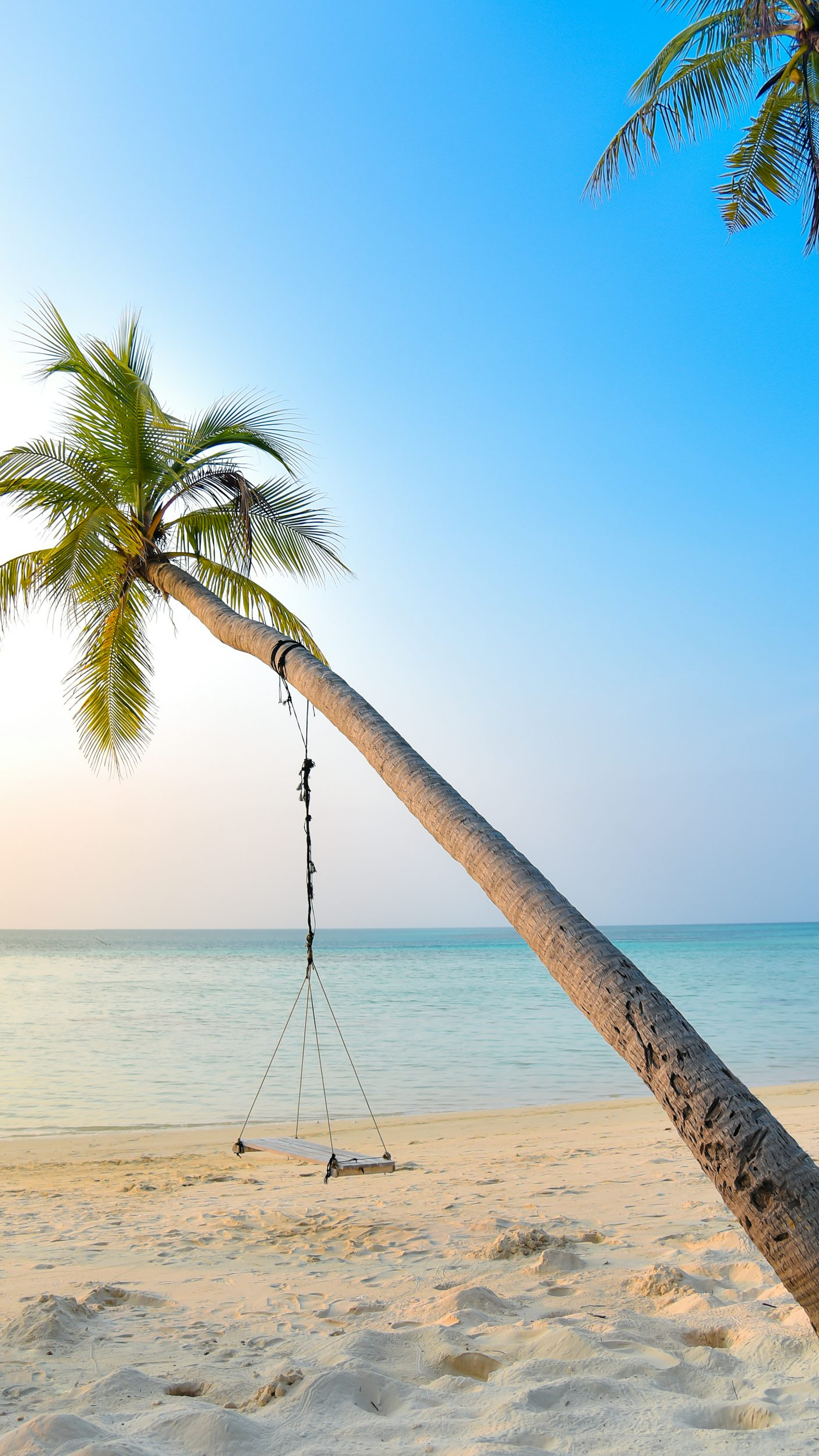 Wallpaper Swing Hanging on Coconut Tree Near Seashore
