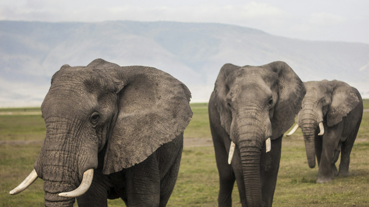 Wallpaper Three Elephants Walking on Grass Field During Day