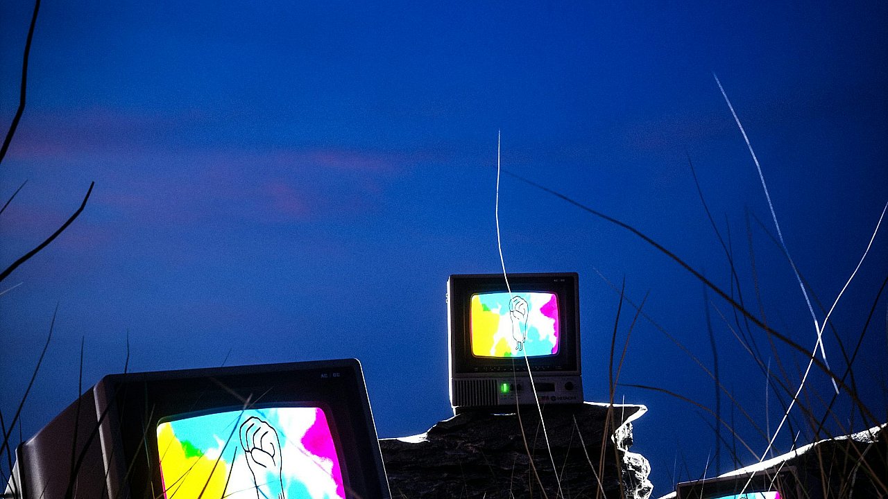 The image offers a bold statement, combining elements of the natural world with the artificial. The surreal aspect is appealing to those looking for wallpaper that’s a bit outside the norm. The vibrant green of the grassy background contrasts beautifully with the dark screens of the television sets.