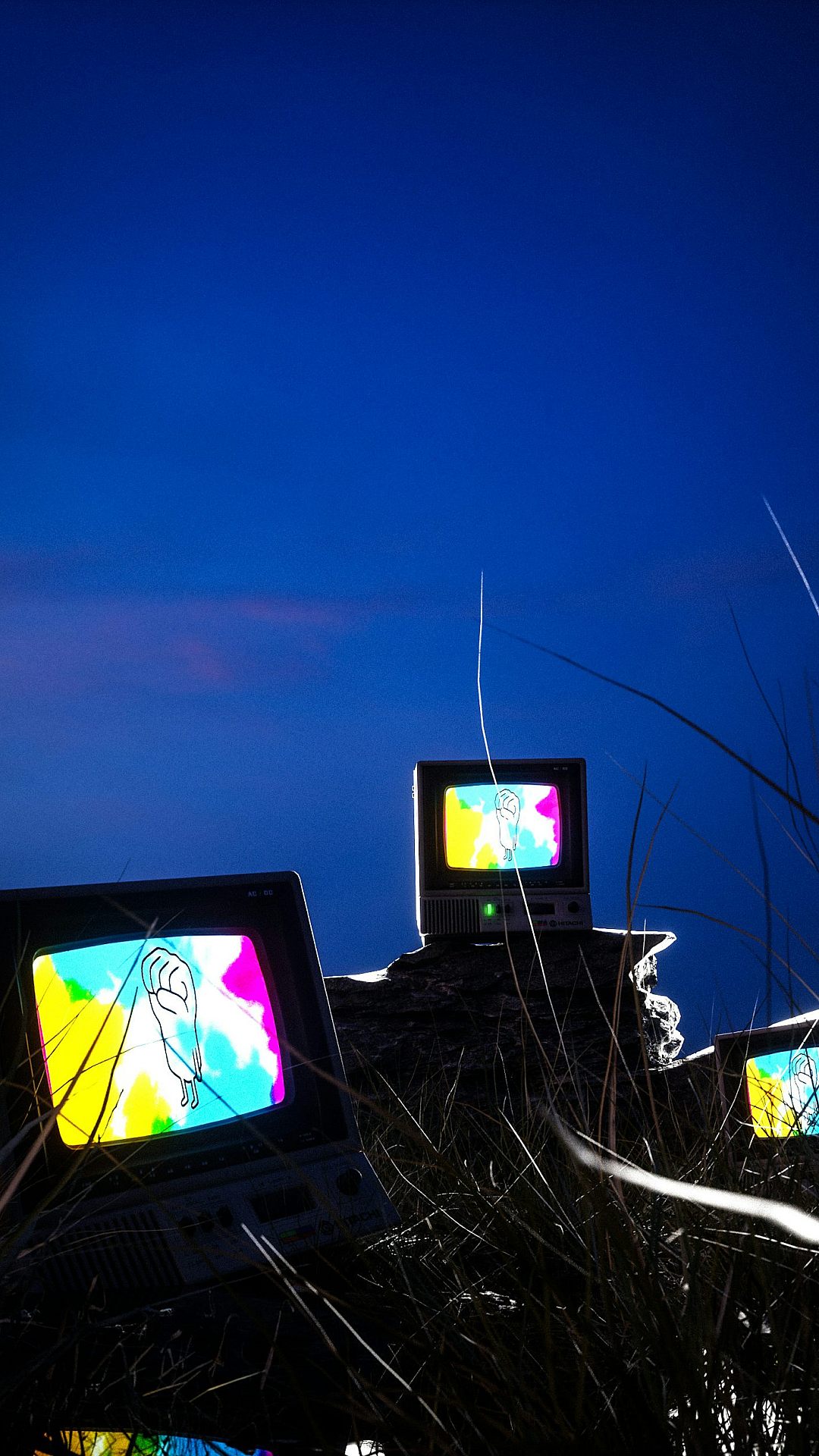 Keywords: three televisions, grass, pile of grass, television wallpaper, TV wallpaper, electronics wallpaper, nature wallpaper, outdoor wallpaper, surreal wallpaper, unusual wallpaper, abstract wallpaper, quirky wallpaper, eclectic wallpaper, grassy background, television set