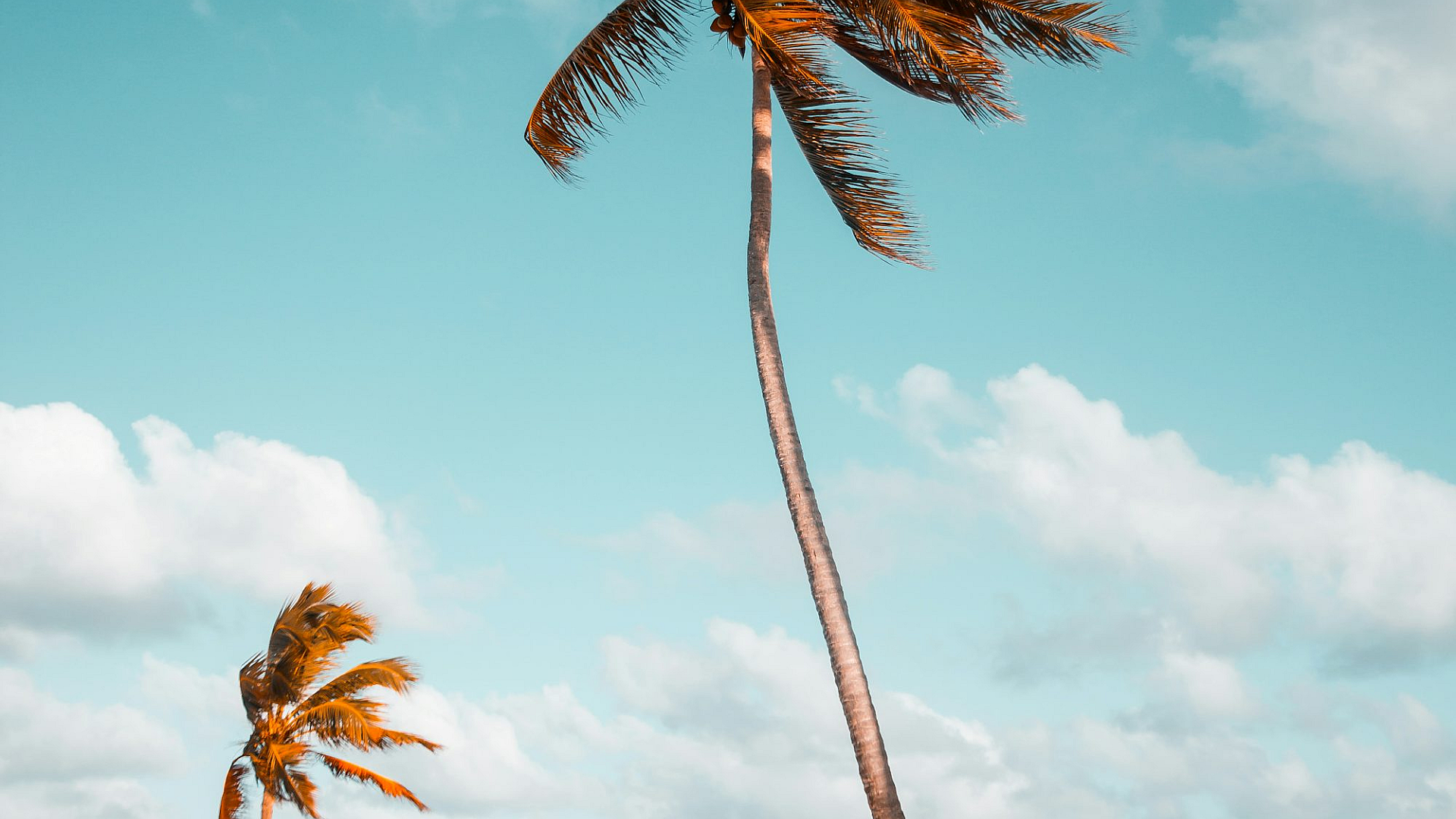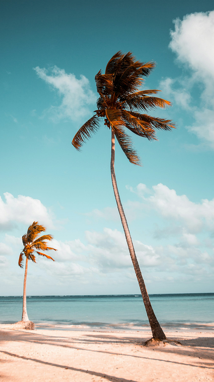 coconut palm trees, palm trees, beach, shore, ocean, sea, coast, clouds, white clouds, sky, tropical, paradise, summer, vacation, landscape