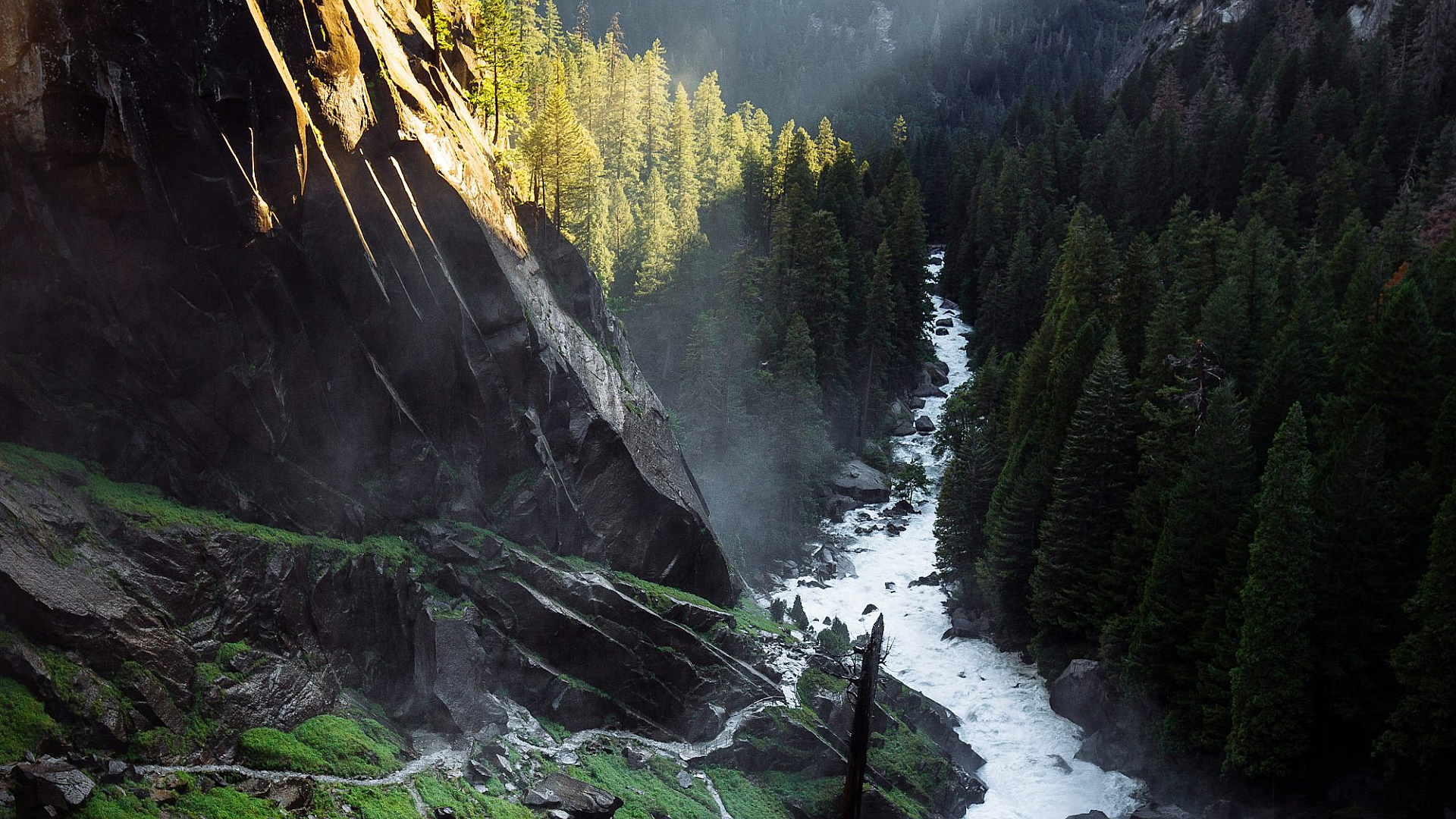 Wallpaper Waterfalls Between Trees