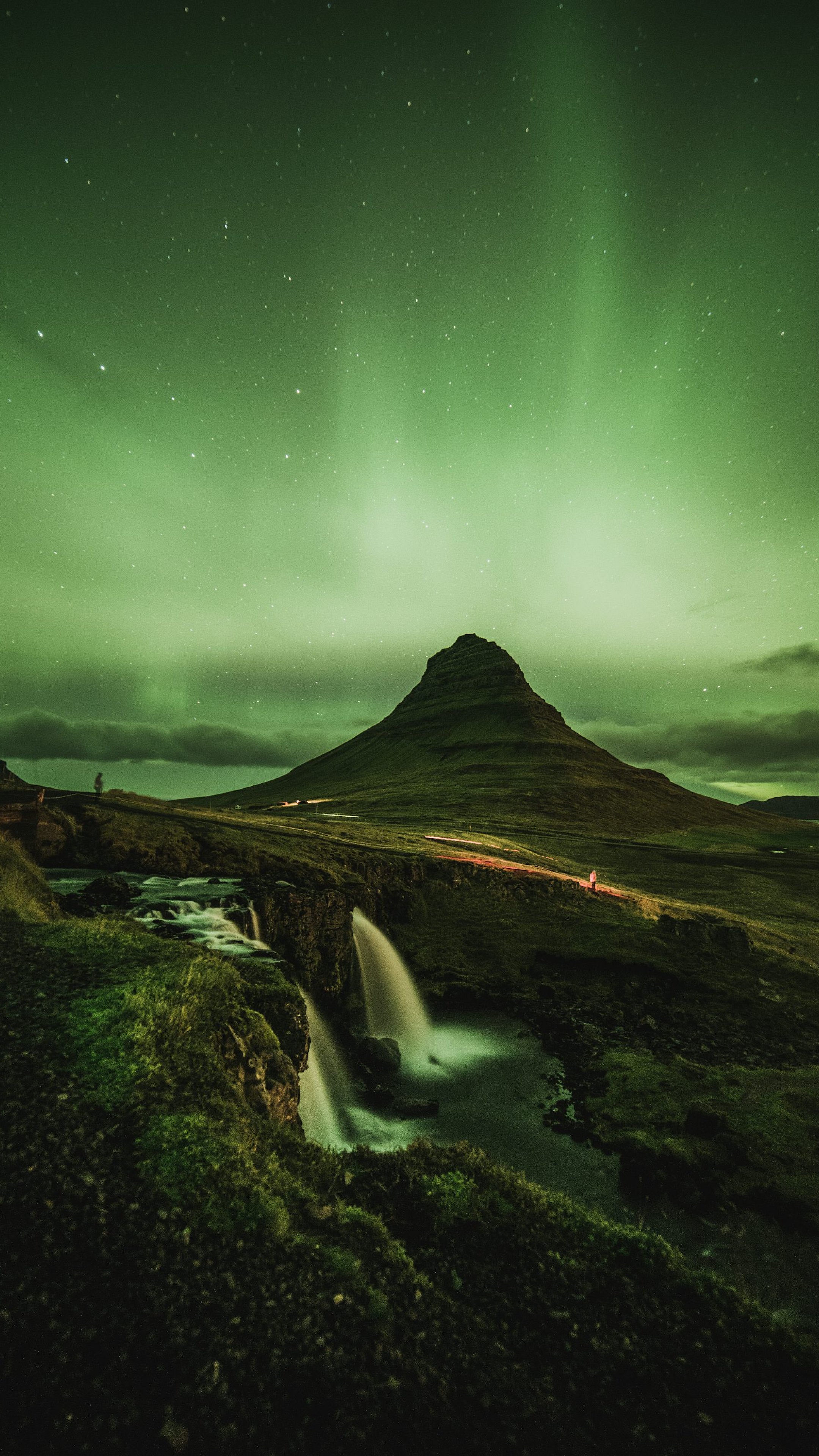 waterfalls, mountain, green sky, cascading water, mountain scenery, nature photography, landscape wallpaper, serene landscape, tranquil scene, waterfall wallpaper, mountain wallpaper, green sky background, natural beauty, nature, outdoor photography, scenic view