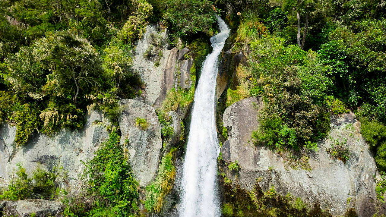 waterfalls, waterfall, cascade, cascades, green trees, lush greenery, foliage, leaves, nature, scenery, landscape, daytime, sunlight, forest, woodland