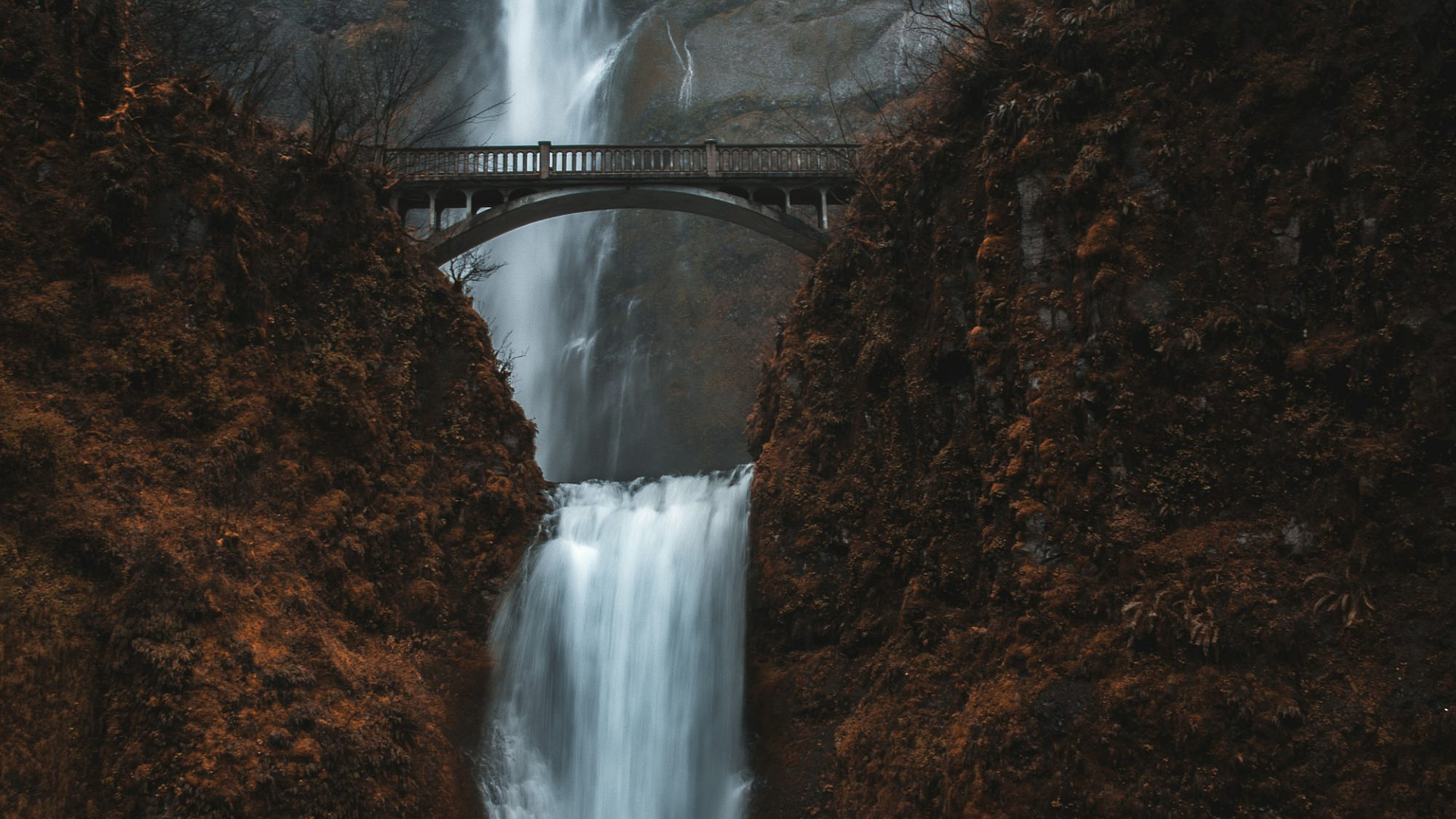 waterfalls, bridge, daytime, cascade, falls, river, stream, architecture, nature, landscape, scenic, picturesque, sunlight, outdoors, photography, wallpaper