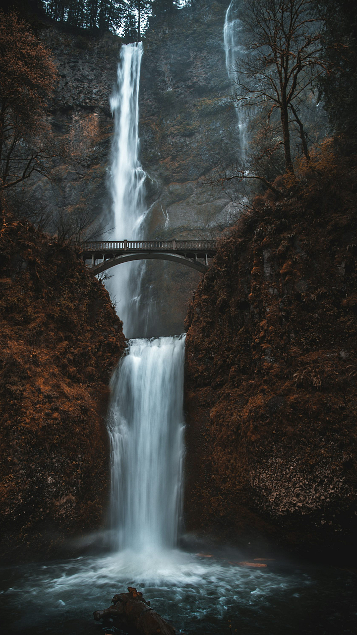 Wallpaper Waterfalls Under Bridge During Daytime