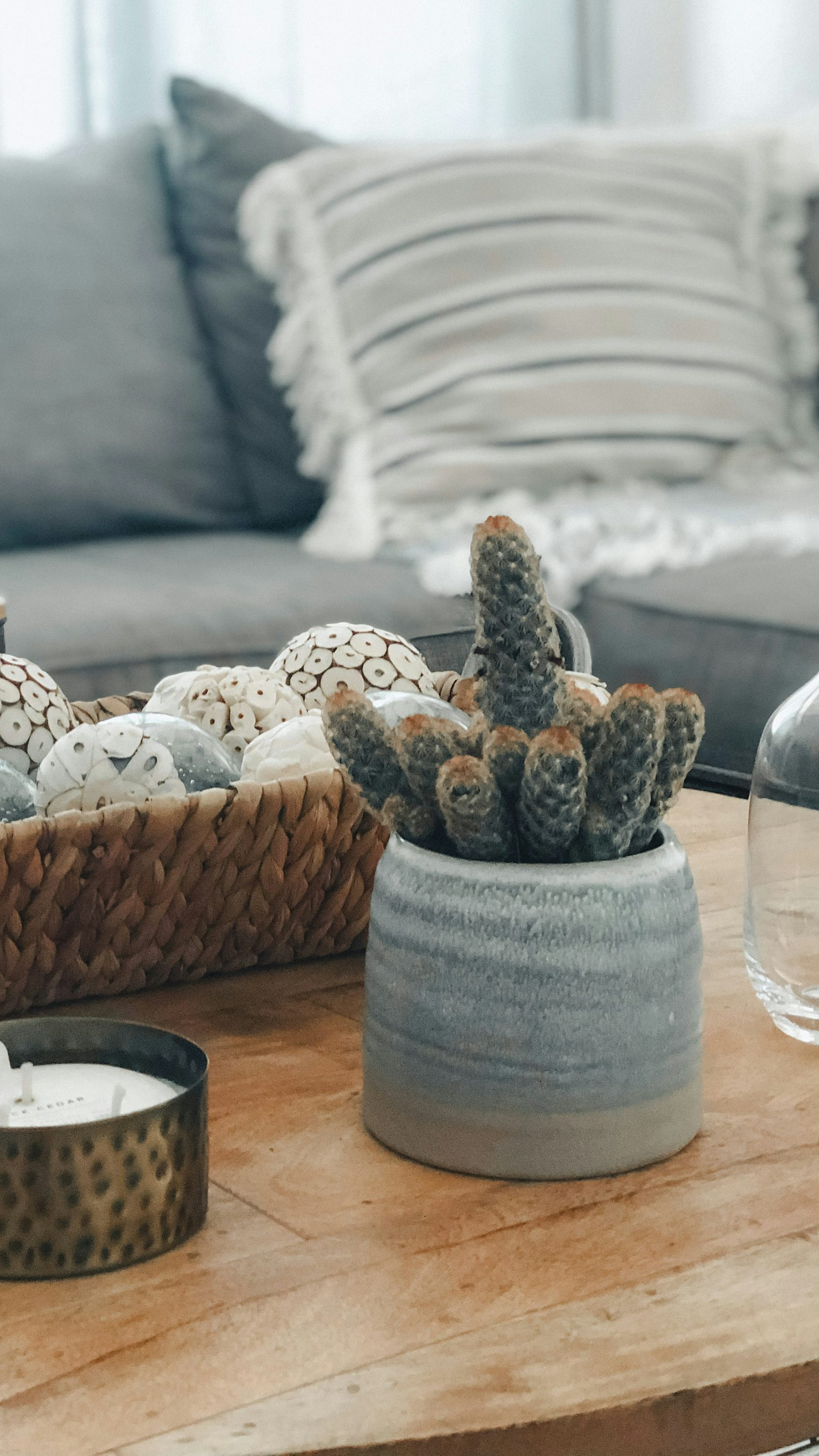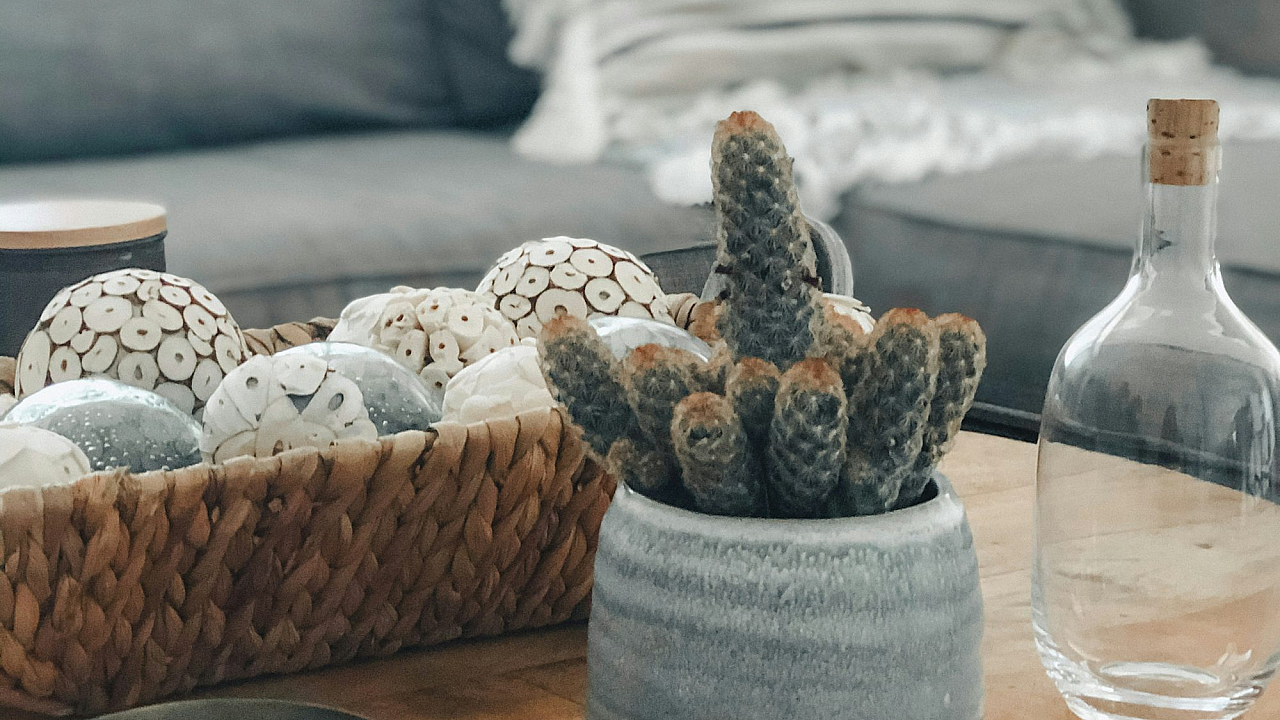 white and brown ceramic mug beside clear glass bottle