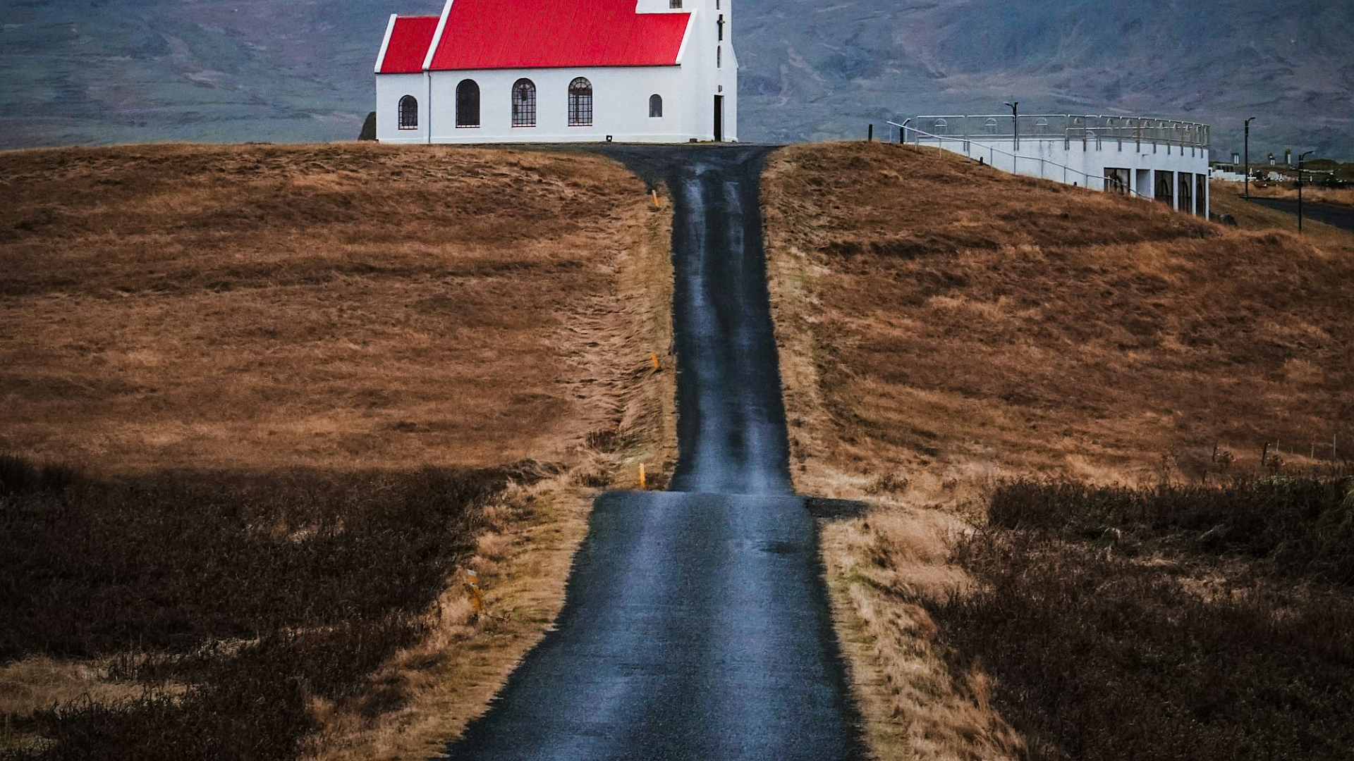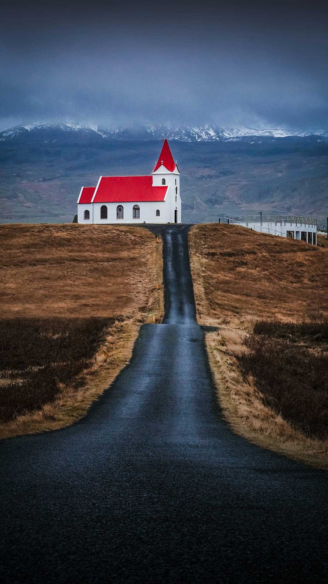 The architectural details are beautifully captured, showcasing the building’s modern design and its harmonious integration with the surrounding natural landscape. The calm waters reflect the sky and the building, adding a sense of tranquility to the overall composition. This wallpaper is ideal for those seeking a minimalist yet impactful visual experience, bringing a touch of modern sophistication to any screen.