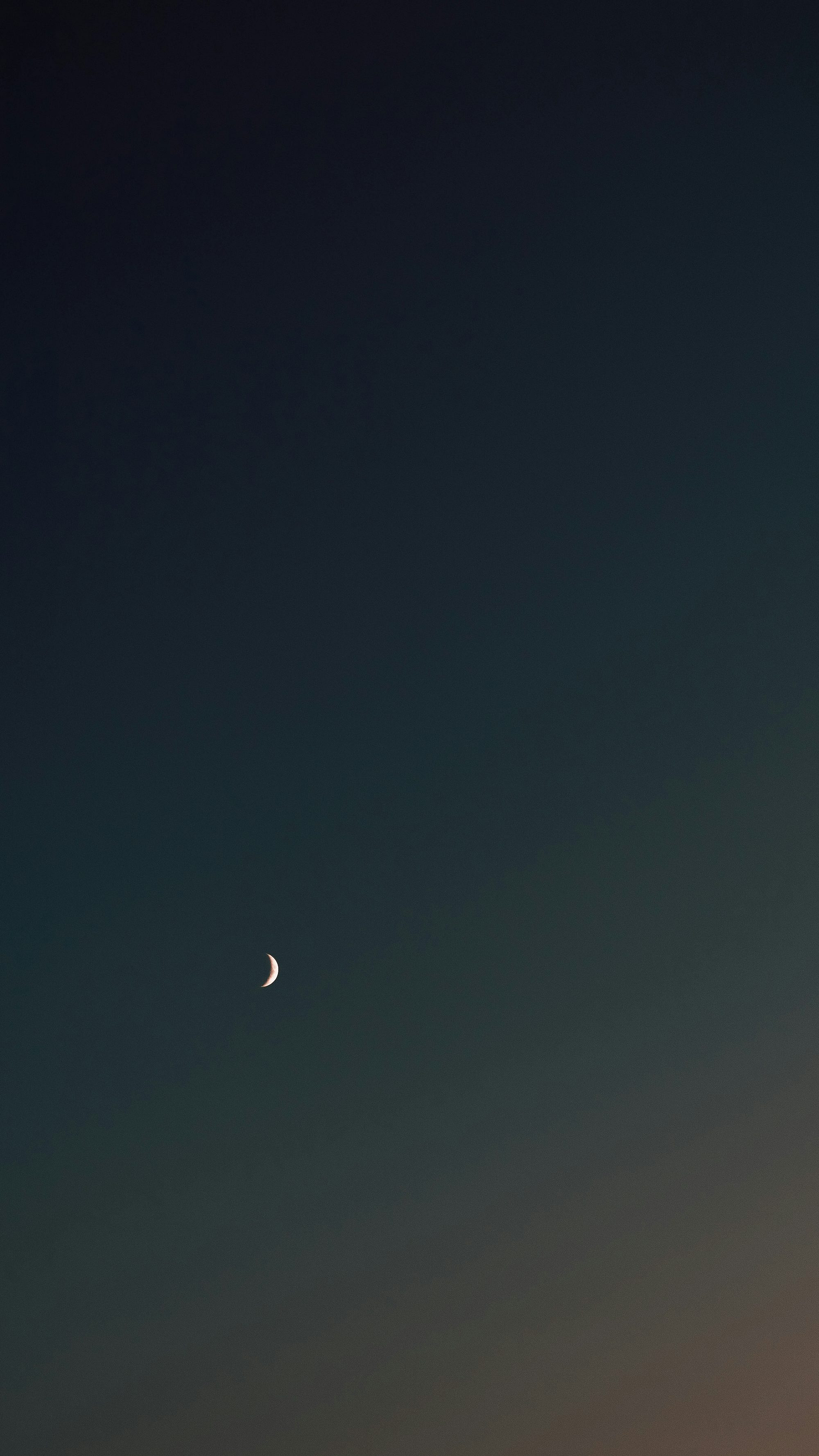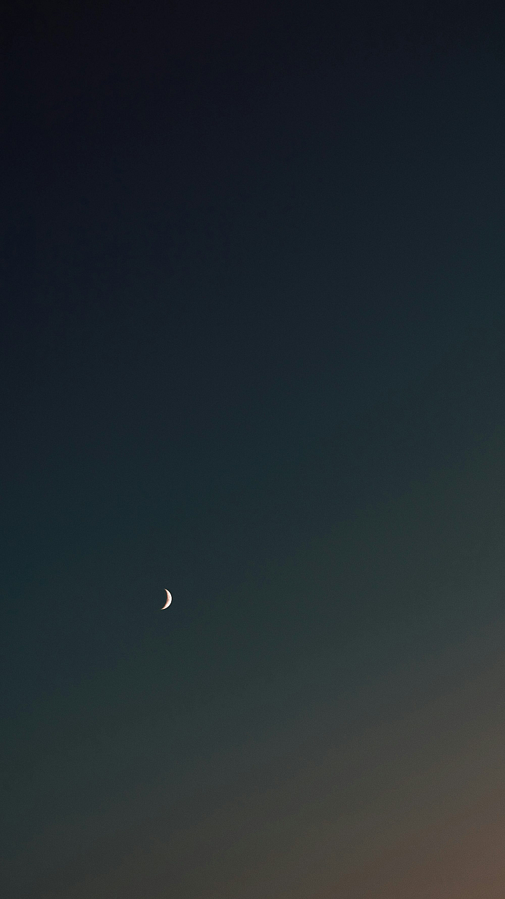 This wallpaper features a stunning image of a white crescent moon gracefully arcing across a deep night sky. The subtle glow of the moon contrasts beautifully with the inky blackness, creating a serene and peaceful atmosphere. The image is perfect for those seeking a calming and elegant backdrop for their devices.