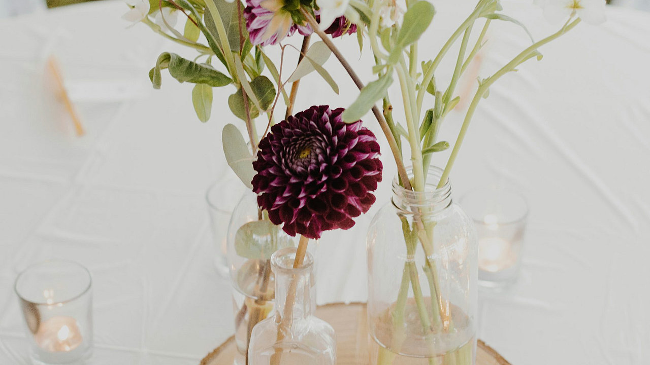 Keywords: white flowers, flower arrangement, glass bottle, tabletop, minimalist, simple, elegant, floral arrangement, white floral, botanical, still life, home decor, wallpaper, background, desktop wallpaper, screen saver