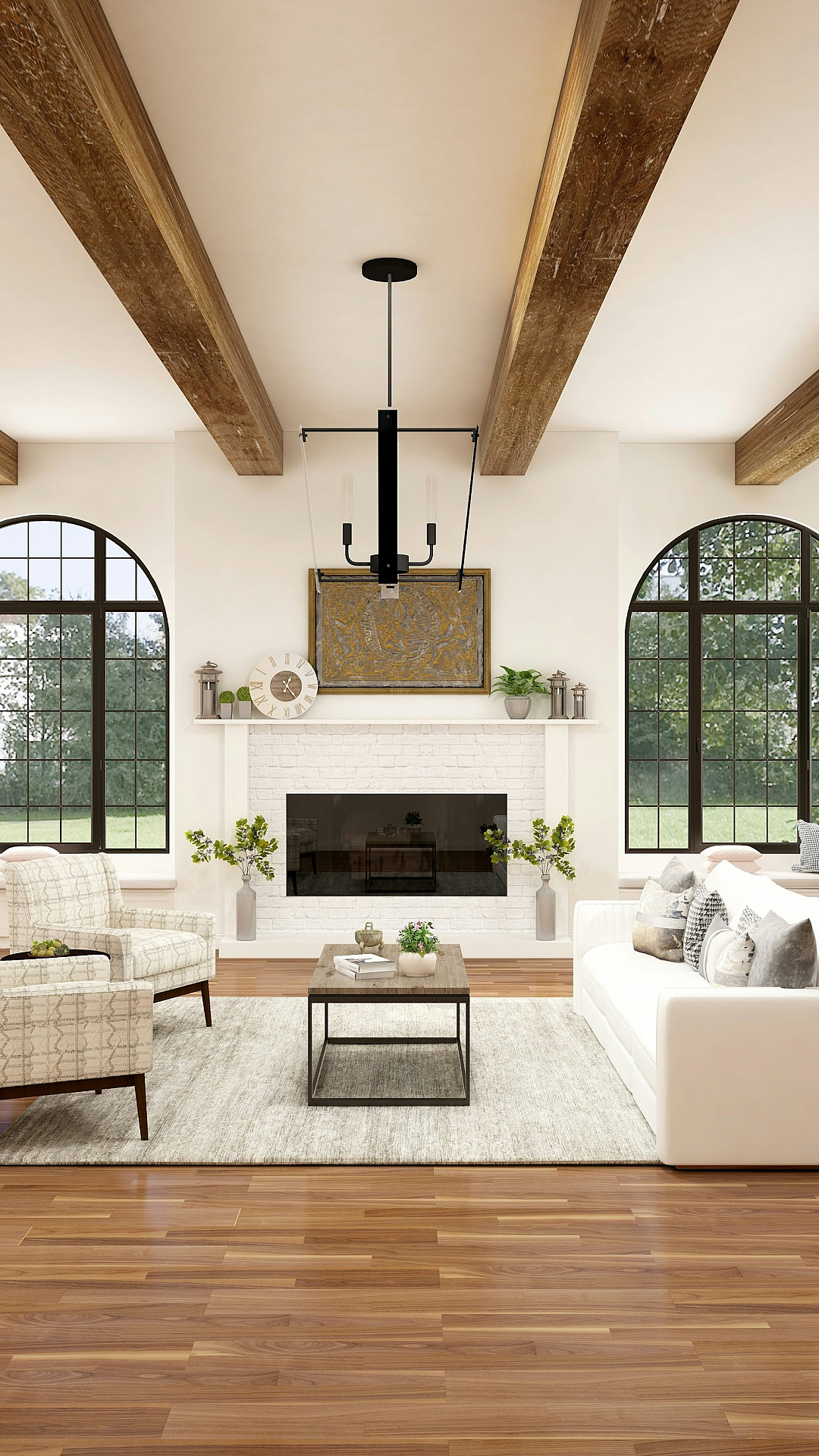 white sofa, white chair, fireplace, living room, interior design, home decor, cozy, comfortable, relaxing, furniture, fireplace mantel, warm, winter, sitting area, room setting