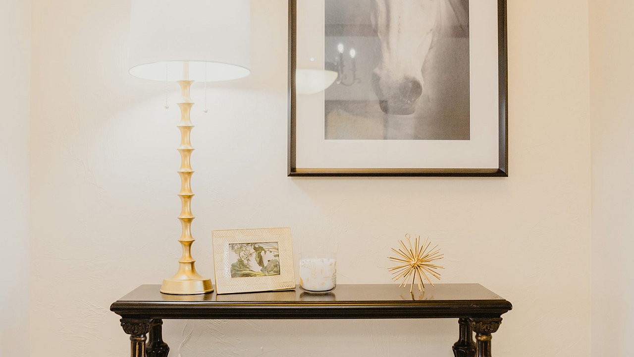 white table lamp, brown wooden table, lamp, table lamp, desk lamp, night lamp, bedside lamp, wooden table, brown table, furniture, lighting, interior design, home decor, minimalist, simple