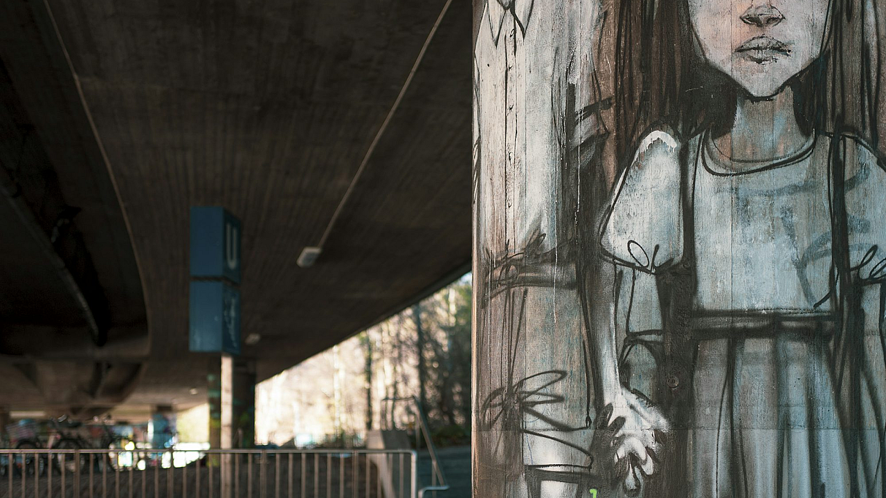 woman, dress, book, graffiti, street art, urban art, reading, literature, female, girl, vintage dress, holding, spray paint, mural, background