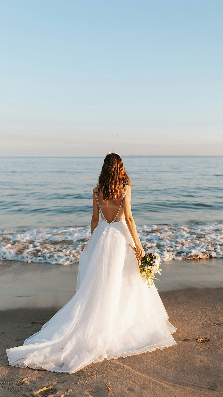 This wallpaper is perfect for various uses, including desktop backgrounds, phone screensavers, and even as part of a wedding-themed presentation. The versatile imagery makes it suitable for a wide range of styles and preferences. The calming and romantic atmosphere makes it an excellent choice for those looking for a serene and inspiring image for their digital displays. Whether you are a bride-to-be, a lover of coastal scenes, or simply appreciate beautiful imagery, this wallpaper is sure to please.