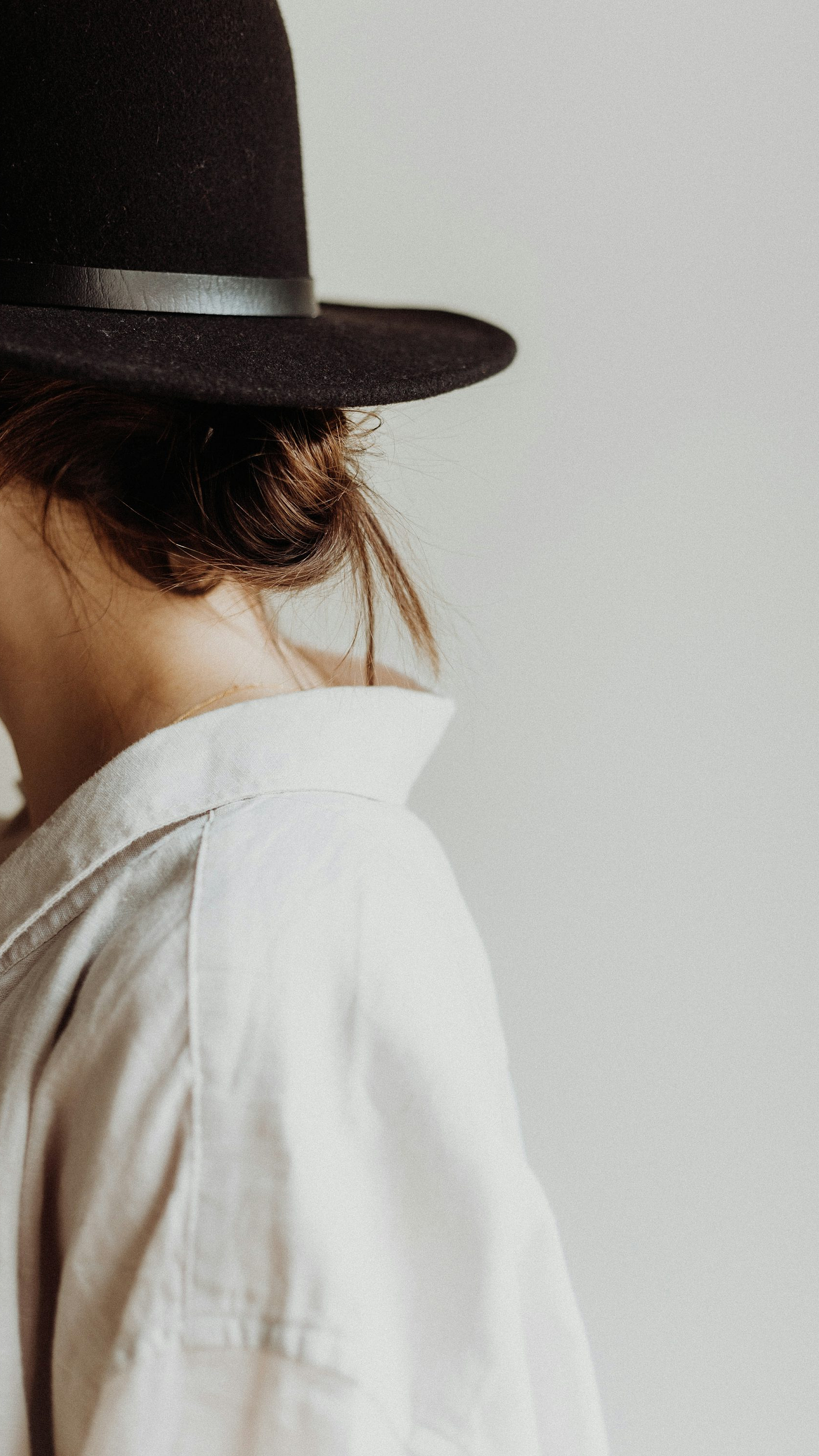 woman, black hat, female, headwear, millinery, fashion, style, elegant, chic, sophisticated, mystery, portrait, dark, vintage, retro