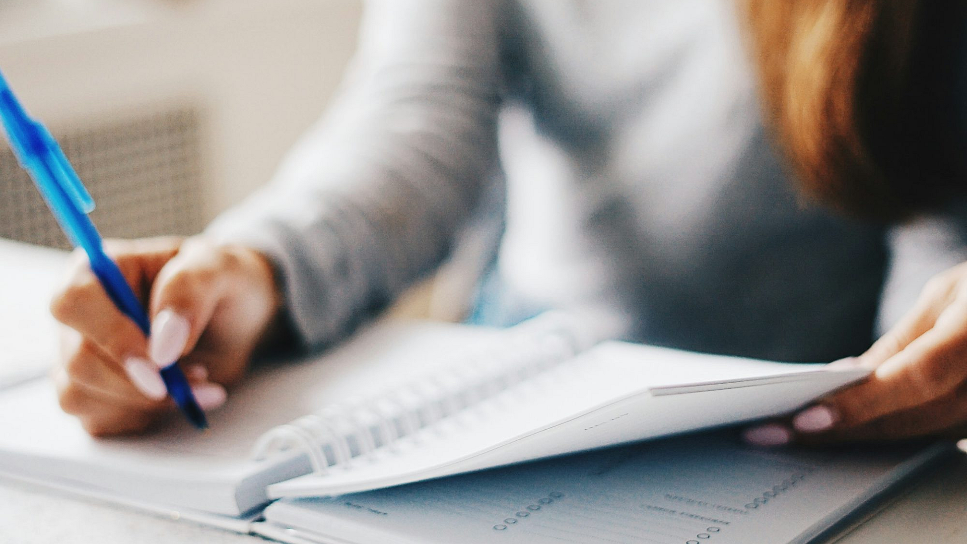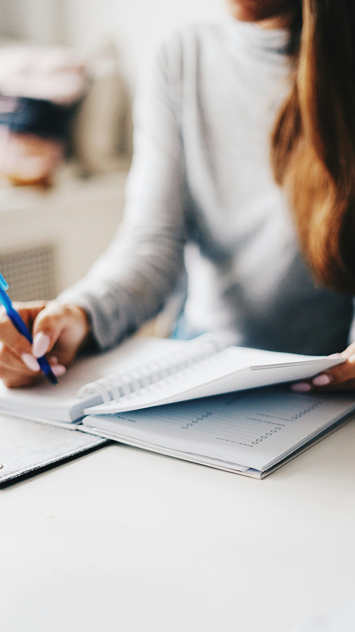 woman, writing, pen, hand, notebook, journal, paper, desk, office, study, learning, note-taking, scribbling, author, writer