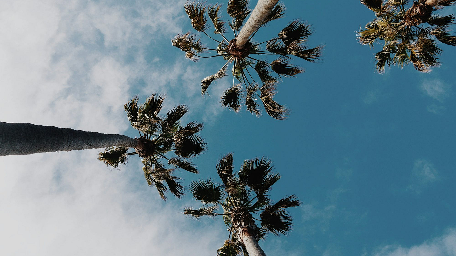 The photograph’s upward view creates a sense of awe and wonder, showcasing the intricate details of the coconut tree‘s structure. It’s a perfect choice for those seeking a calming and inspiring wallpaper to brighten their day.
