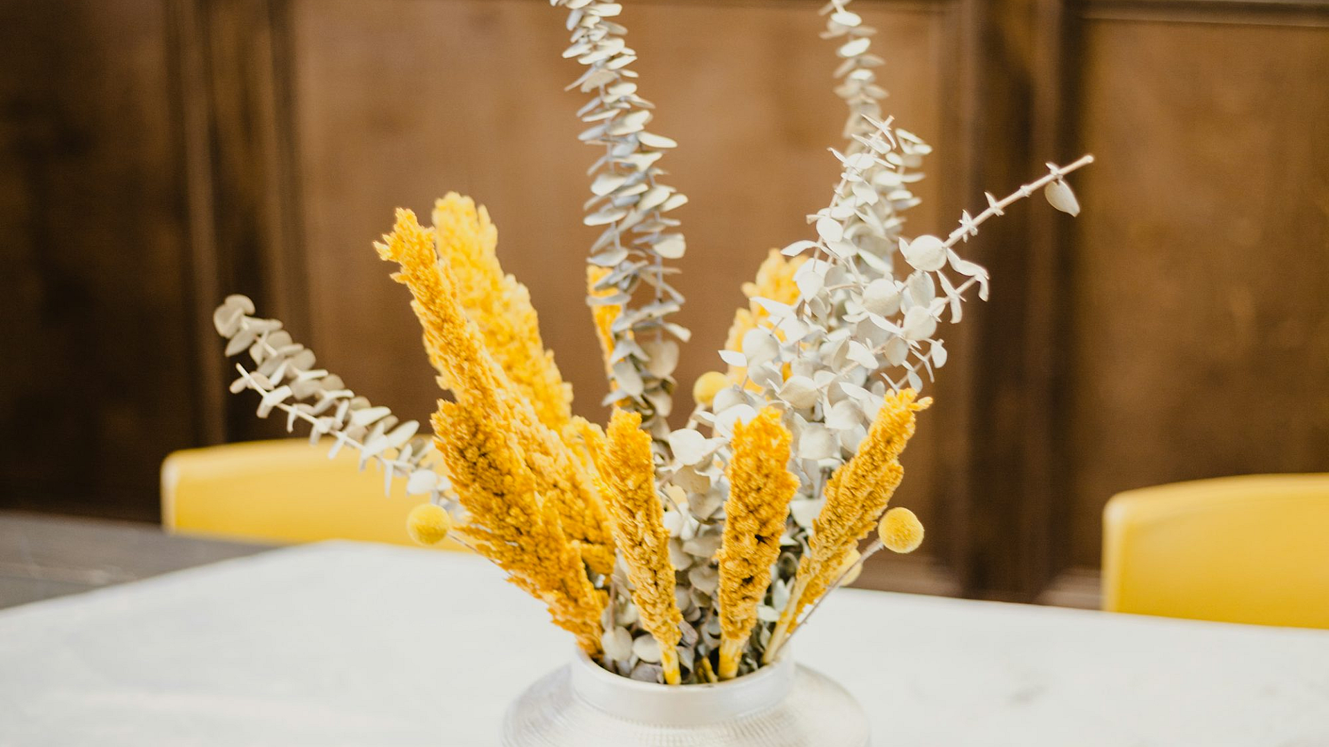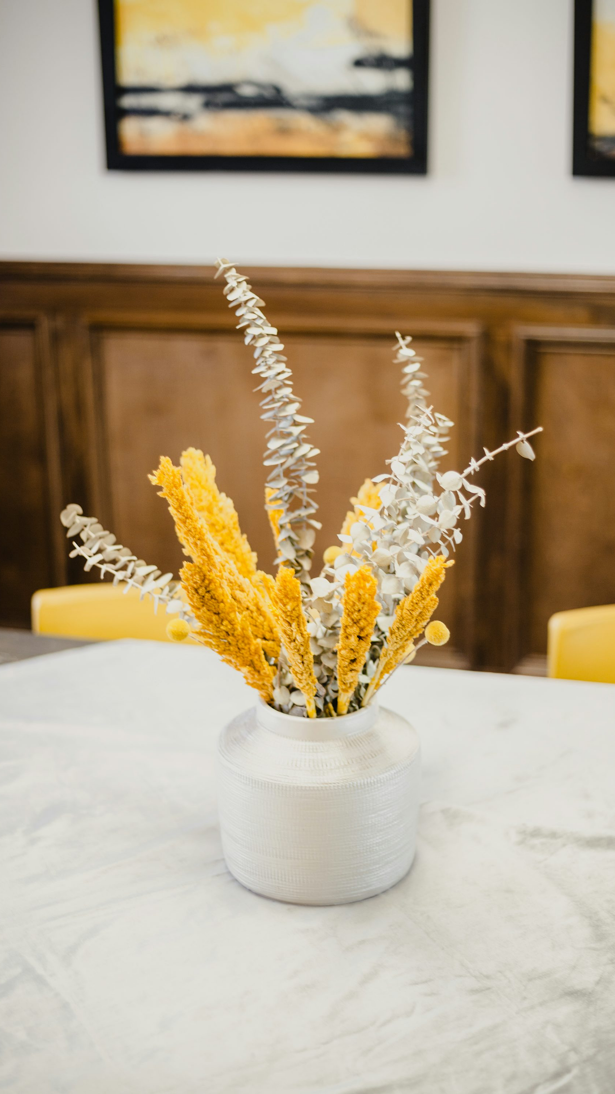 Wallpaper Yellow Flowers in White Ceramic Vase