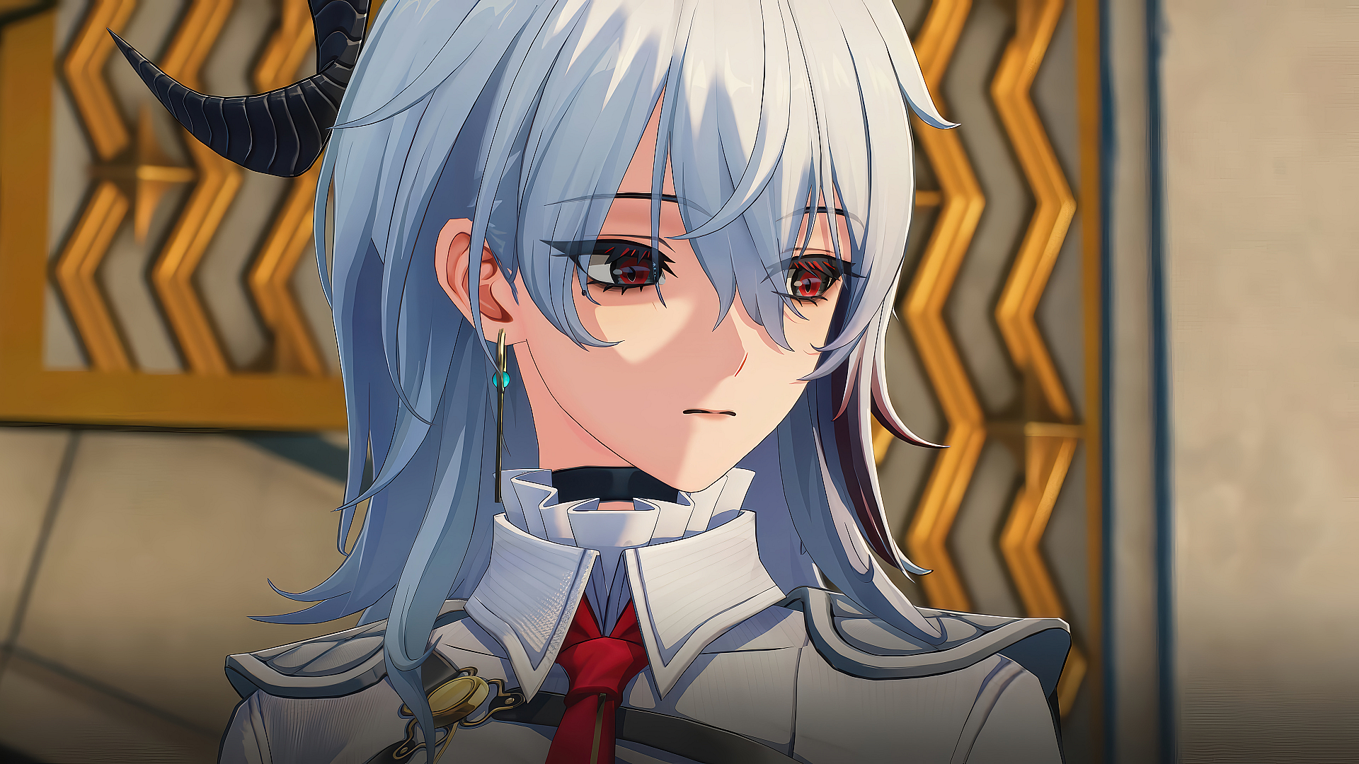 Wallpaper Anime Girl Sword White Hair Horn